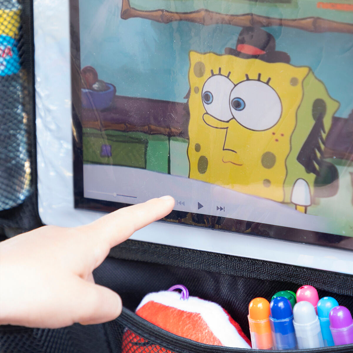 The transparent and touch-sensitive pocket is ideal for storing and using a tablet - a great alternative to keep the kids entertained while driving.