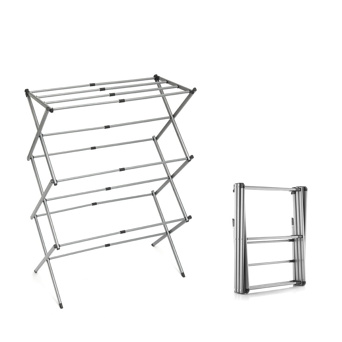 Foldable and extendable metal clothes rack with 3 height levels (11 rods)